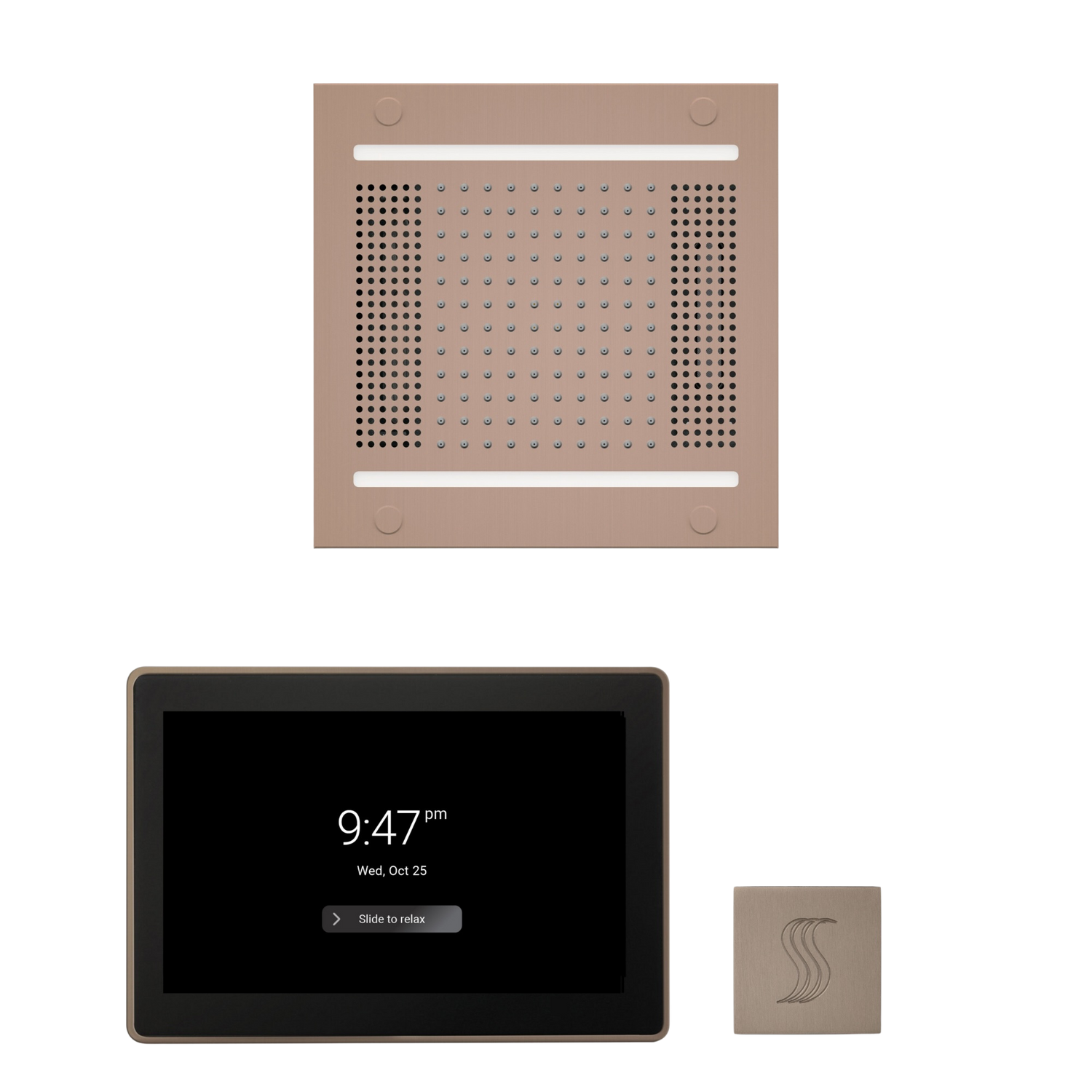 HydroVive 14 Rainhead - HydroVive is an award-winning rain head that combines full-spectrum LED lighting, premium sound, and cascading water to create a truly multisensory shower experience. Designed for complete personalization, it integrates seamlessly with ThermaSol's Digital Shower Valve and smart controls like ThermaTouch and SignaTouch—putting every element of your environment at your fingertips. Now featuring true white light for enhanced clarity and ambiance.